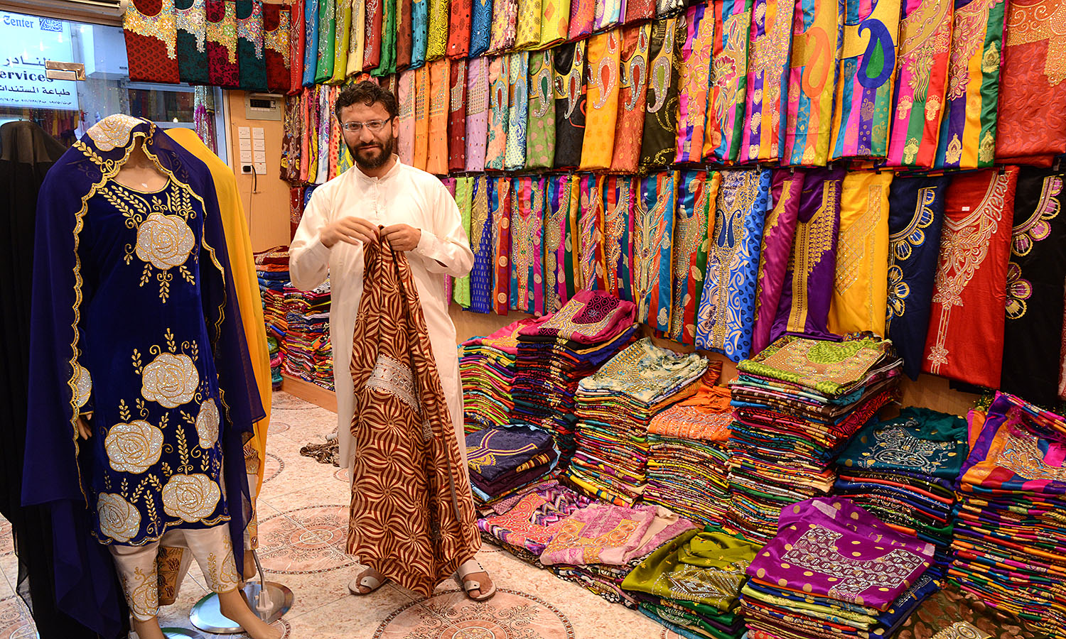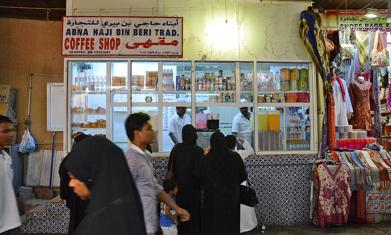 If you look beyond the main passage, you can slink into a labyrinth of hole-in-the wall coffee shops, stands dripping with gold and boutiques where black-clad ladies thumb abayas (traditional robes) in fabrics of cerulean and hot pink.
