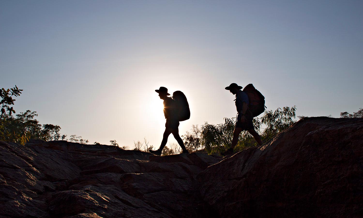 With the accumulated wisdom of a season spent in the Top End, she’s hiking across the southern edge of the Arnhem Land escarpment with an infectious grin and a cotton shirt that she drenches at every opportunity. “Cotton cools,” she says, extending her o’s with a laugh as she puts the sopping wet tee back on.
