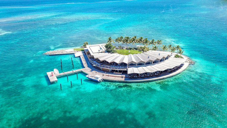 The island also has an expansive, open-air restaurant, lounge, two very epic-looking bars (including a rooftop sunset bar), spa room, and retail space, that also serves as a museum with artefacts from nearby shipwrecks.