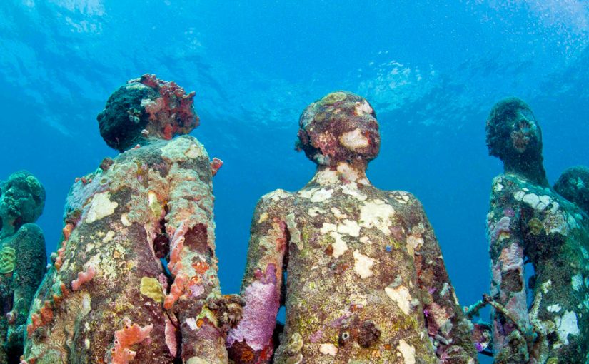 This surreal world lies beneath the calm waters of Grenada’s Molinere Bay where are number of life-size figures made mainly from concrete sit at the bottom of the Caribbean Sea, nibbled by tropical fish.