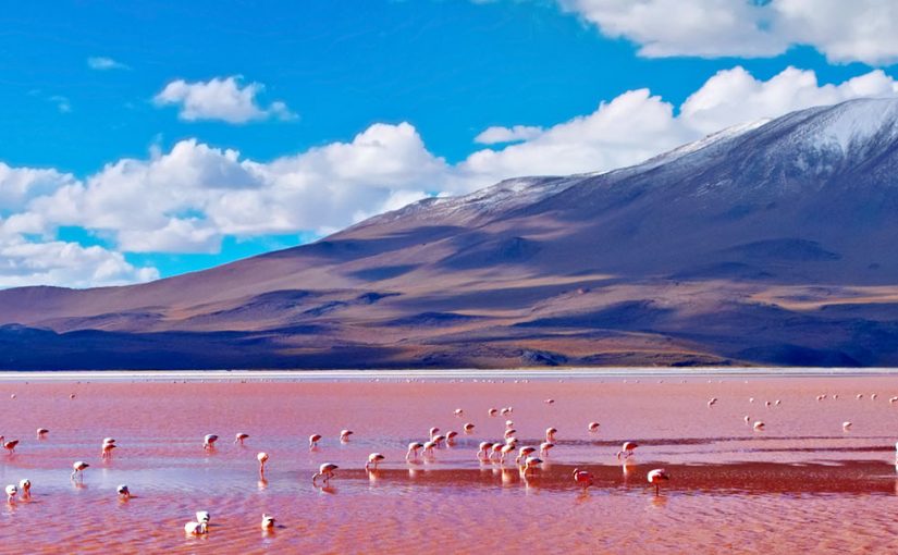 The other attractions at Laguna Colorada are the flamingos that can be seen wading in the shallows. One of the three species is the rare James’s flamingo – also known as the puna flamingo – which is native to the region but was thought extinct until a small population was discovered in 1956. While they’re still considered endangered, the abundant plankton in the water keeps them coming back in hefty numbers for food. They’re naturally white, by the way; it’s the algae that stains them this glorious shade of pink.